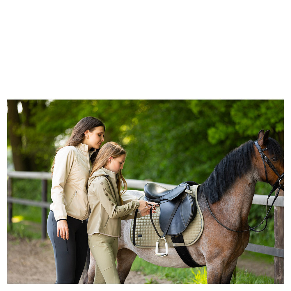 - Print van paardenhoofd op mouw en schouder.