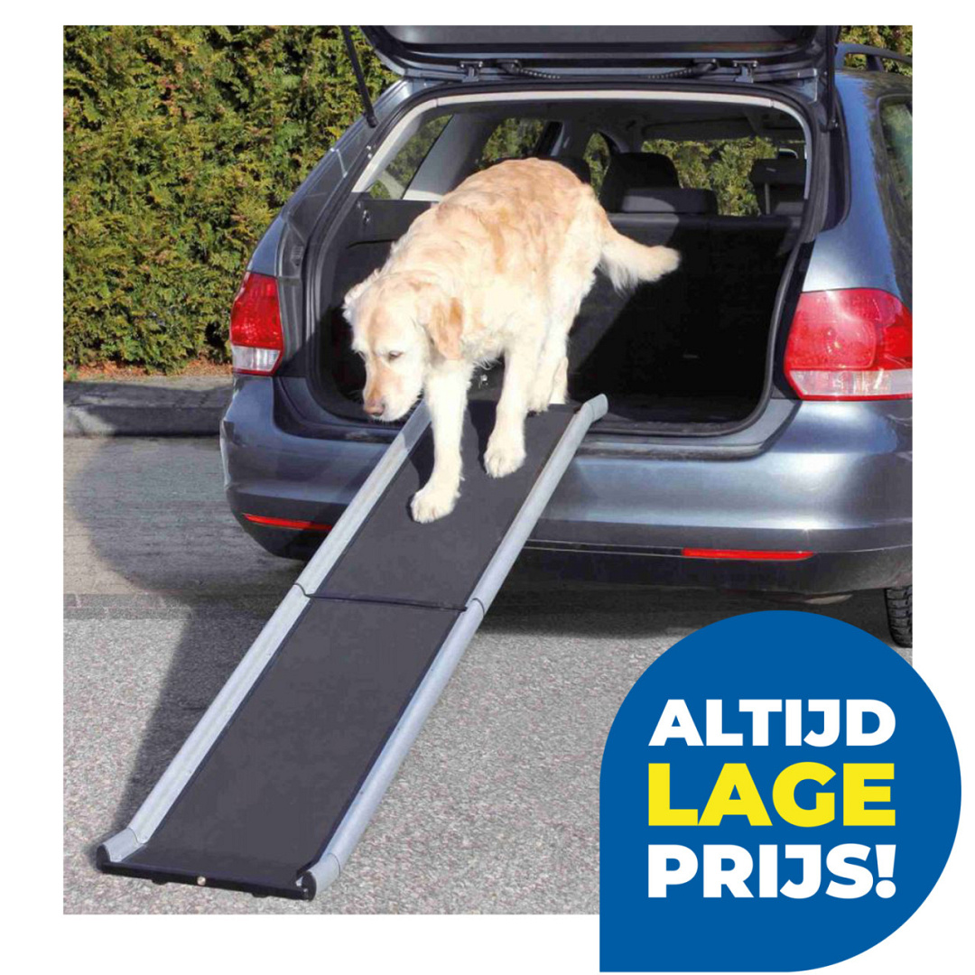Met de TRIXIE inklapbare loopplank Petwalk kan jouw hond gewoon de auto in- en uitstappen via de plank. Hiermee ontlast je de rug en gewrichten van jouw hond.