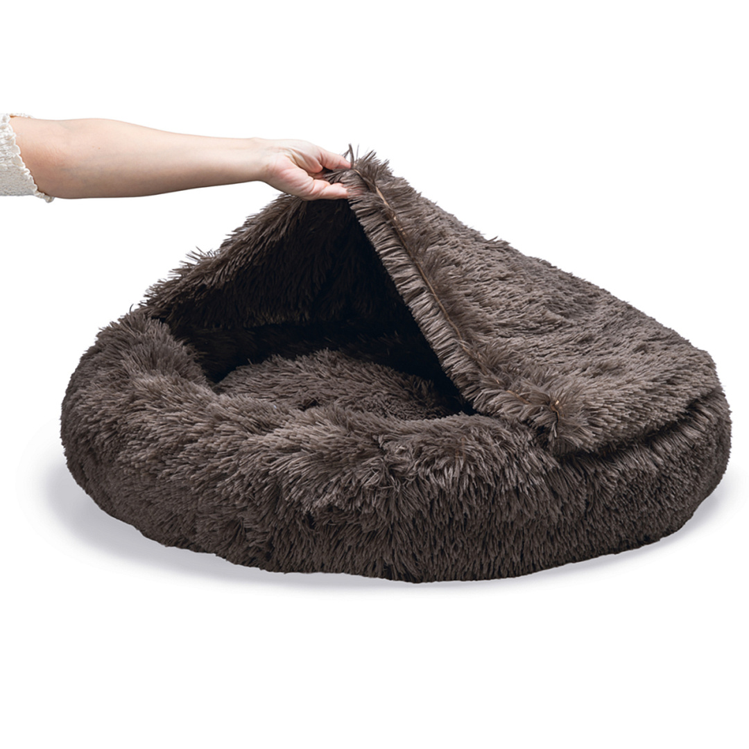 Heerlijke pluchen mand met geïntegreerde slaapzak voor als jouw hond het koud heeft. Kan in zijn geheel in de wasmachine.