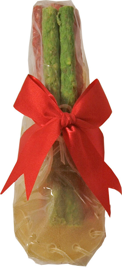 Feestelijke kauwschoen van buffelhuid, gevuld met munchy kauwstaafjes.
