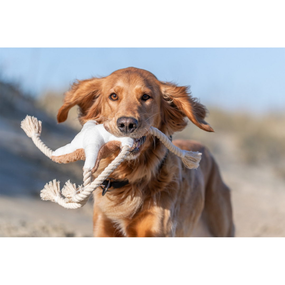 Stevig hondenspeeltje met touw binnenin. Gemaakt van katoen/polyester.
