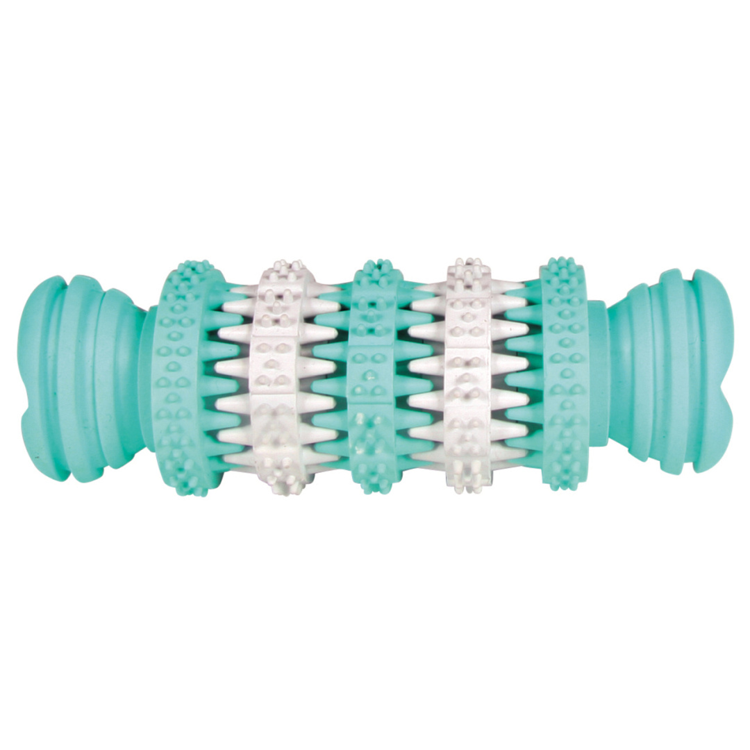 Het TRIXIE Denta Fun Bot is gemaakt van natuurrubber en heeft een frisse muntsmaak. Doordat jouw hond op het bot kauwt wordt het tandvlees gemasseerd.