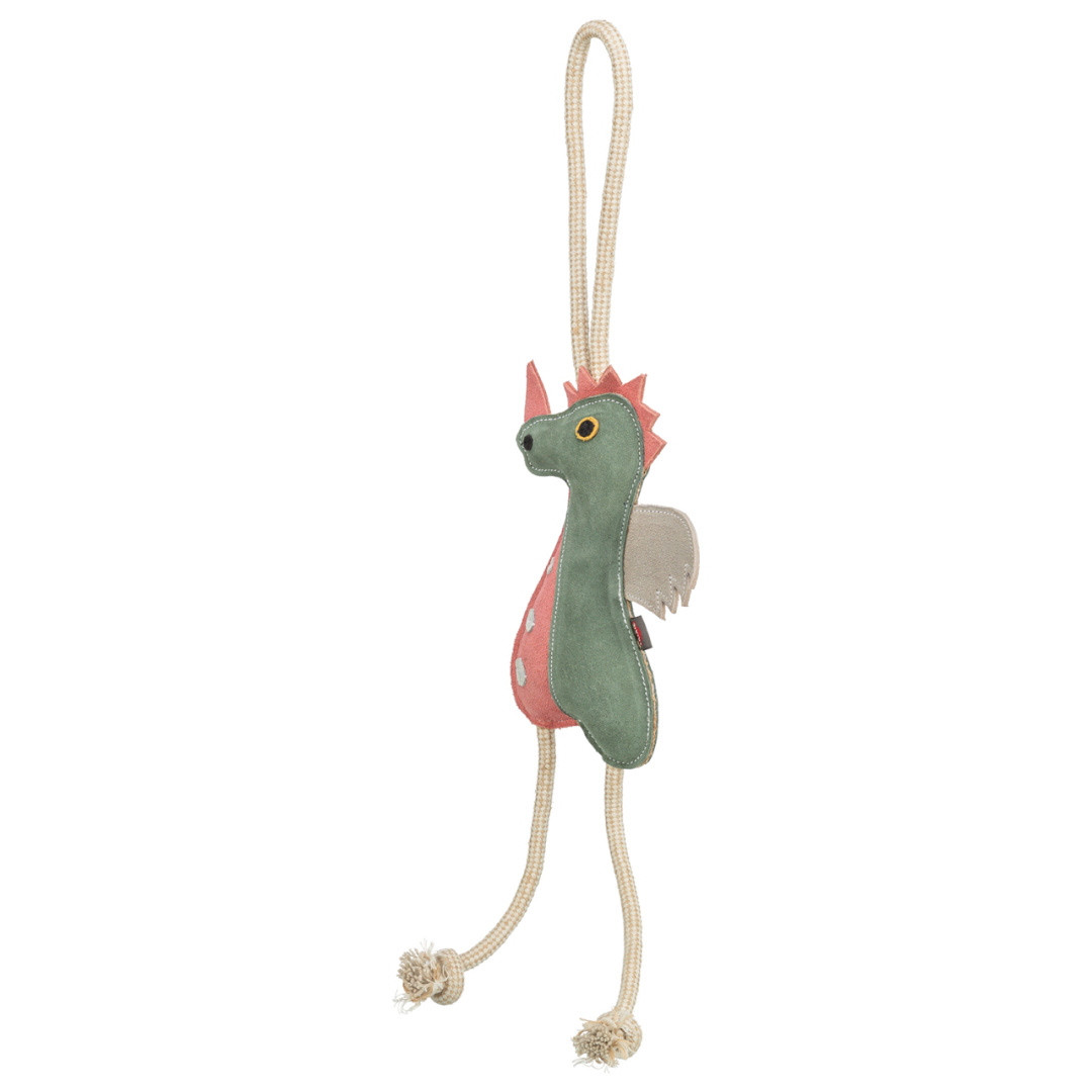 Het Trixie hondenspeeltje Draak aan touw is een grappig en robuust hondenspeeltje van echt leer met touw. Voor de leukste apporteer- en trekspelletjes.