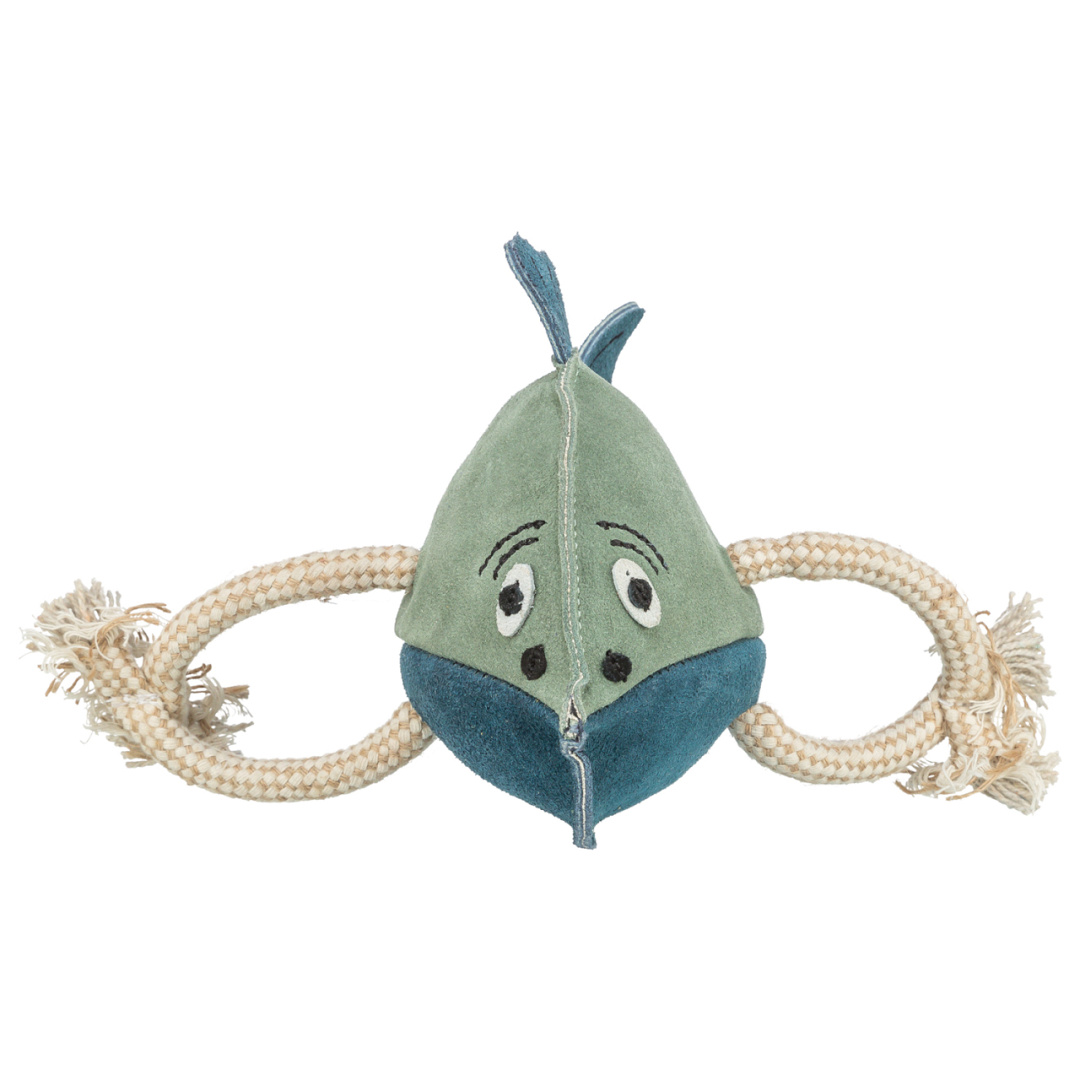 Het Trixie hondenspeeltje Vis met touw is een grappig en robuust hondenspeeltje van echt leer met touw, gevuld met kokosvezels. Voor de leukste apporteer- en trekspelletjes.