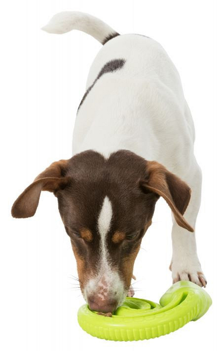 De TRIXIE Snackslang is een speeltje van thermoplastisch rubber (TPR) met een spleetvormige opening aan de onderkant. De slang kan gevuld worden met bijv. leverworst, snoepjes of koekjes.