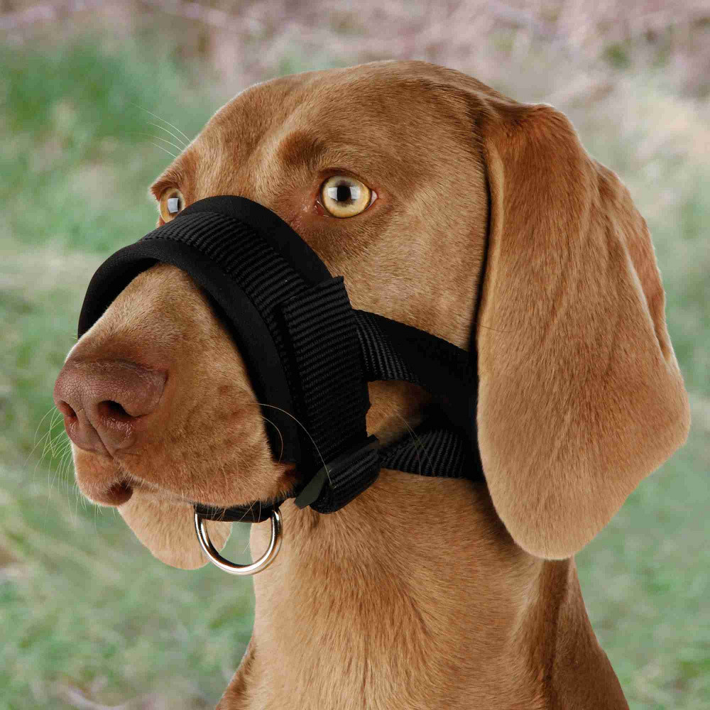 TRIXIE Snuitje stopt het bijten maar laat de hond goed ademen en drinken. De band is vanwege de gewatteerde nylon voering extra zacht. De riem is verstelbaar en heeft een sluitveer.