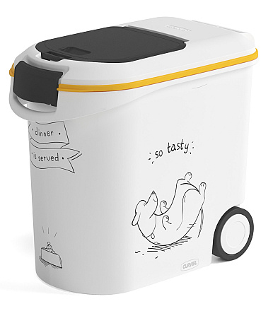 De Curver voedselcontainer 'Dinner is Served' hond is een zeer handige container voor het bewaren van hondenbrokjes. Met deze container heb je nooit meer een zak brokjes in de schuur of kelder, maar is het netjes opgeborgen in een fraai uitziende container.