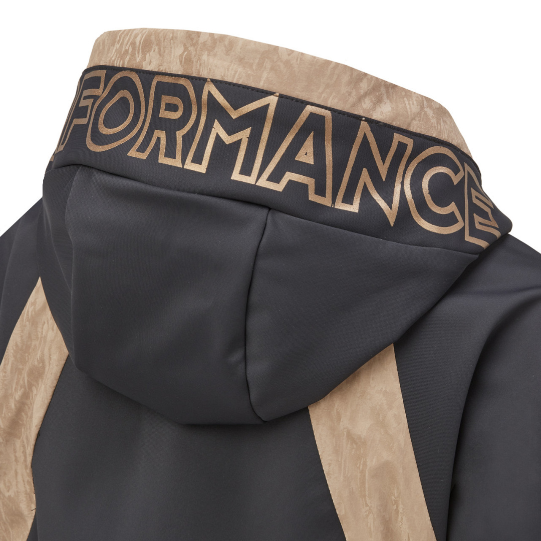 De capuchon is afgewerkt met het performance logo voor een sportieve look.