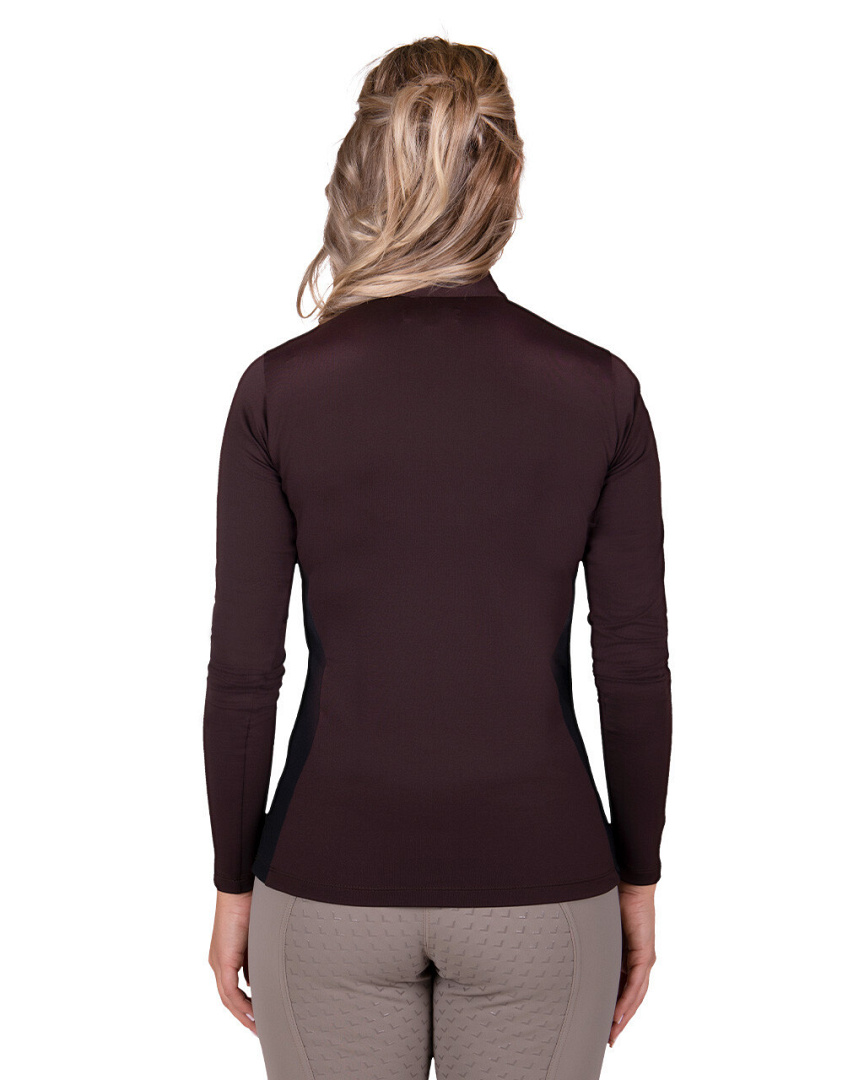 QHP Thermoshirt Julin heeft een mooie coffee kleur en is afgewerkt met zwarte contrasterende stroken.