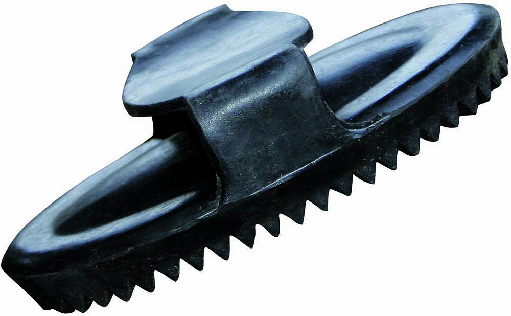 Rubberen rosborstel om hardnekkig vuil van je paard te kunnen verwijderen.