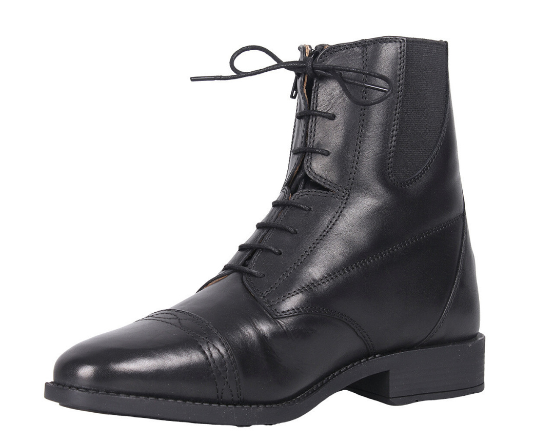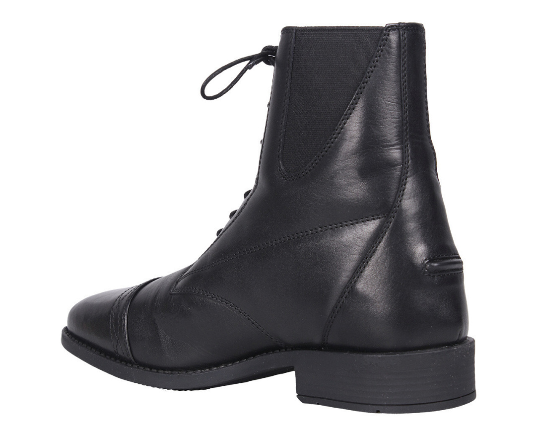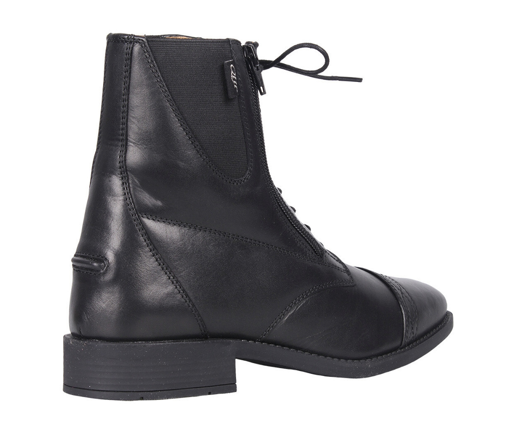 De veter, elastiekinzetten en schuine rits zorgen ervoor dat deze jodhpur gemakkelijk aan te trekken en zeer comfortabel om te dragen is.