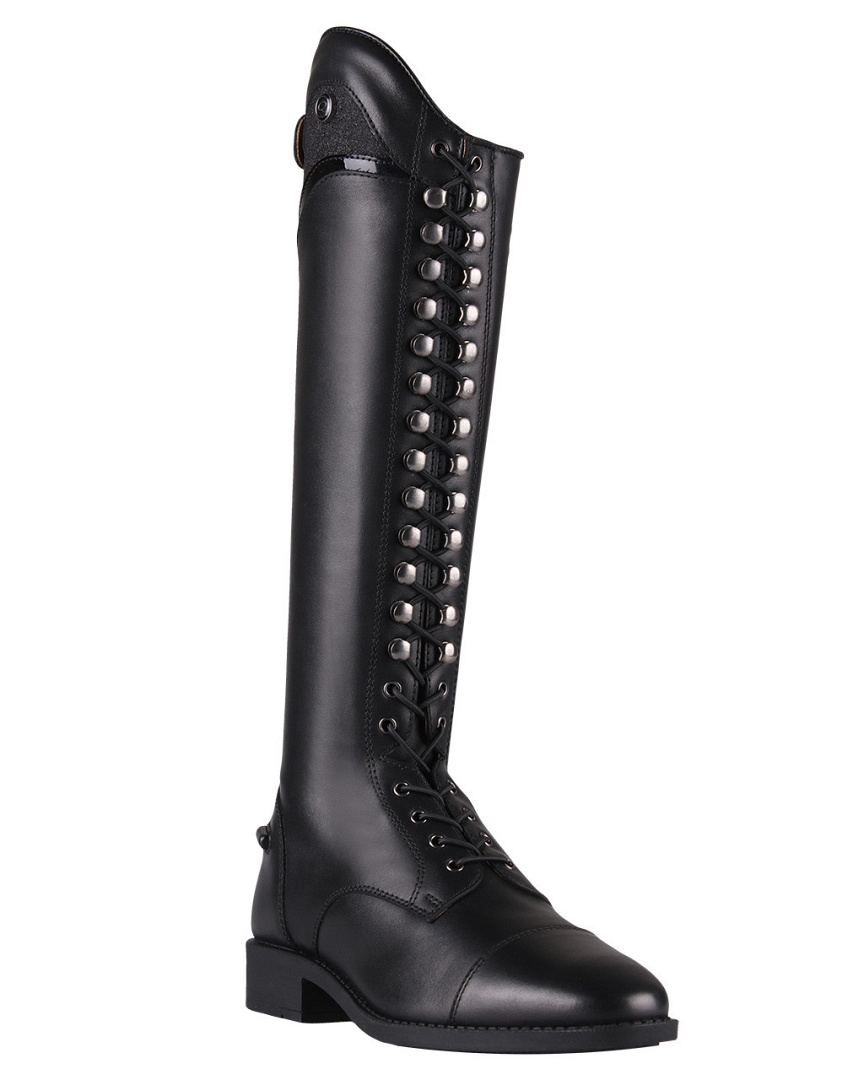 De decoratieve vetersluiting zorgt voor een opvallende look, maar met de ritssluiting trek je hem gemakkelijk aan.