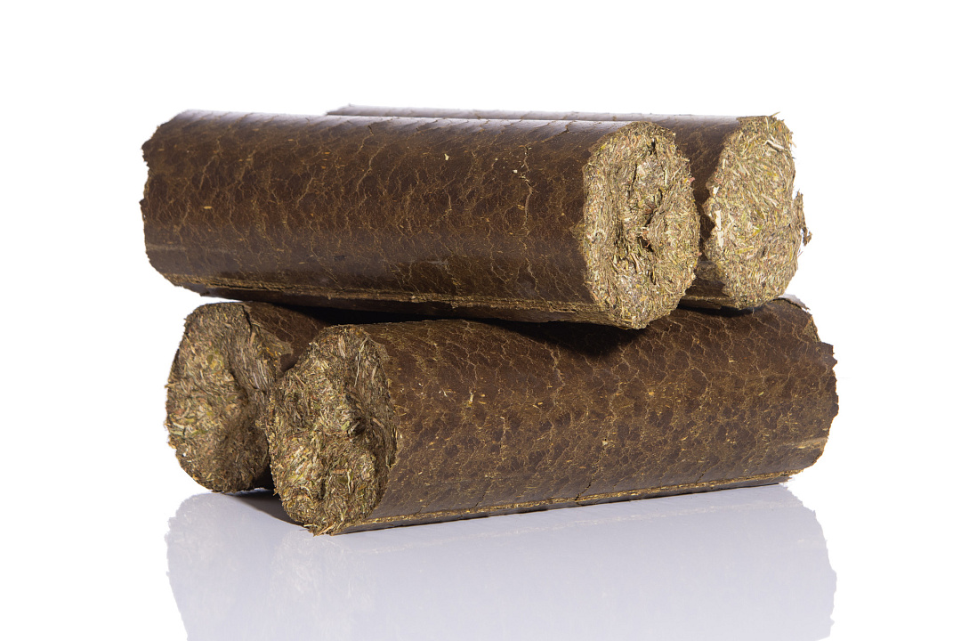 Vers van de wei worden de ingrediënten direct verwerkt en geperst tot een lange, ronde vorm.
