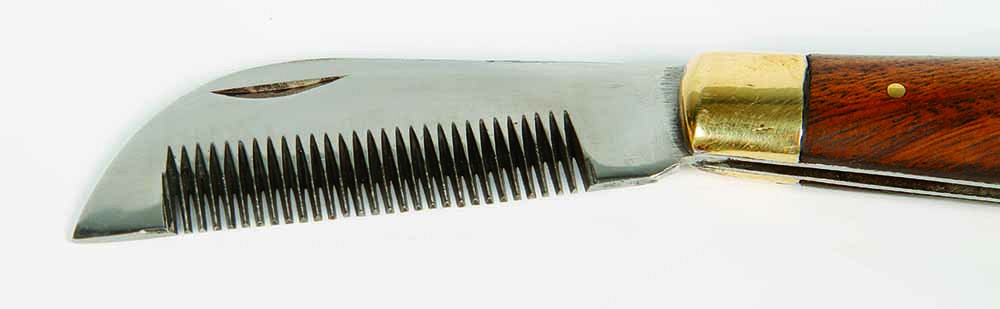 Praktisch mes voor het pijnloos uitdunnen van de manen.