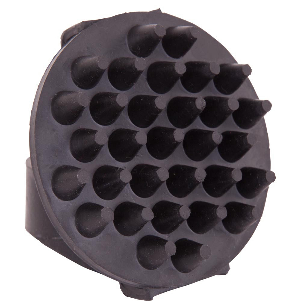 Ronde rubberen massageborstel met grote, stevige noppen en een handgreep.