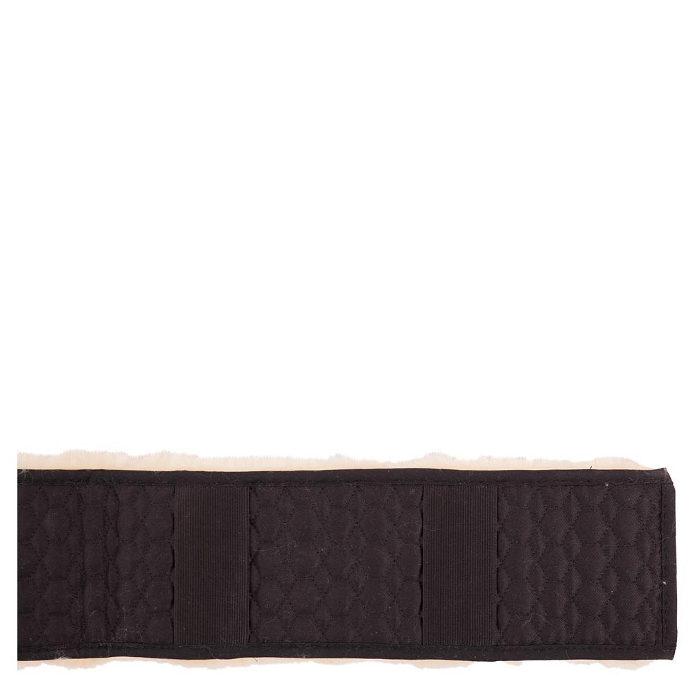 De ene zijde van de hoes is van medicinale schapenvacht, ter bescherming van de paardenhuid. Aan de andere zijde zitten elastiekjes om de hoes aan de singel te bevestigen.